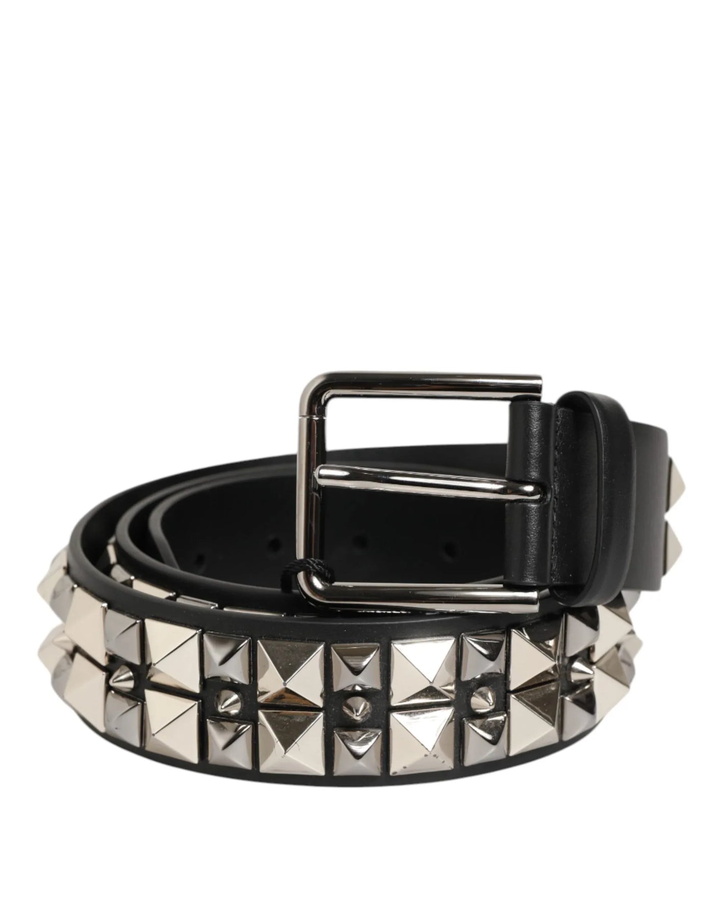 Dolce & Gabbana Black Calf Leather Studded Silver Buckle Belt - Sootee Collective