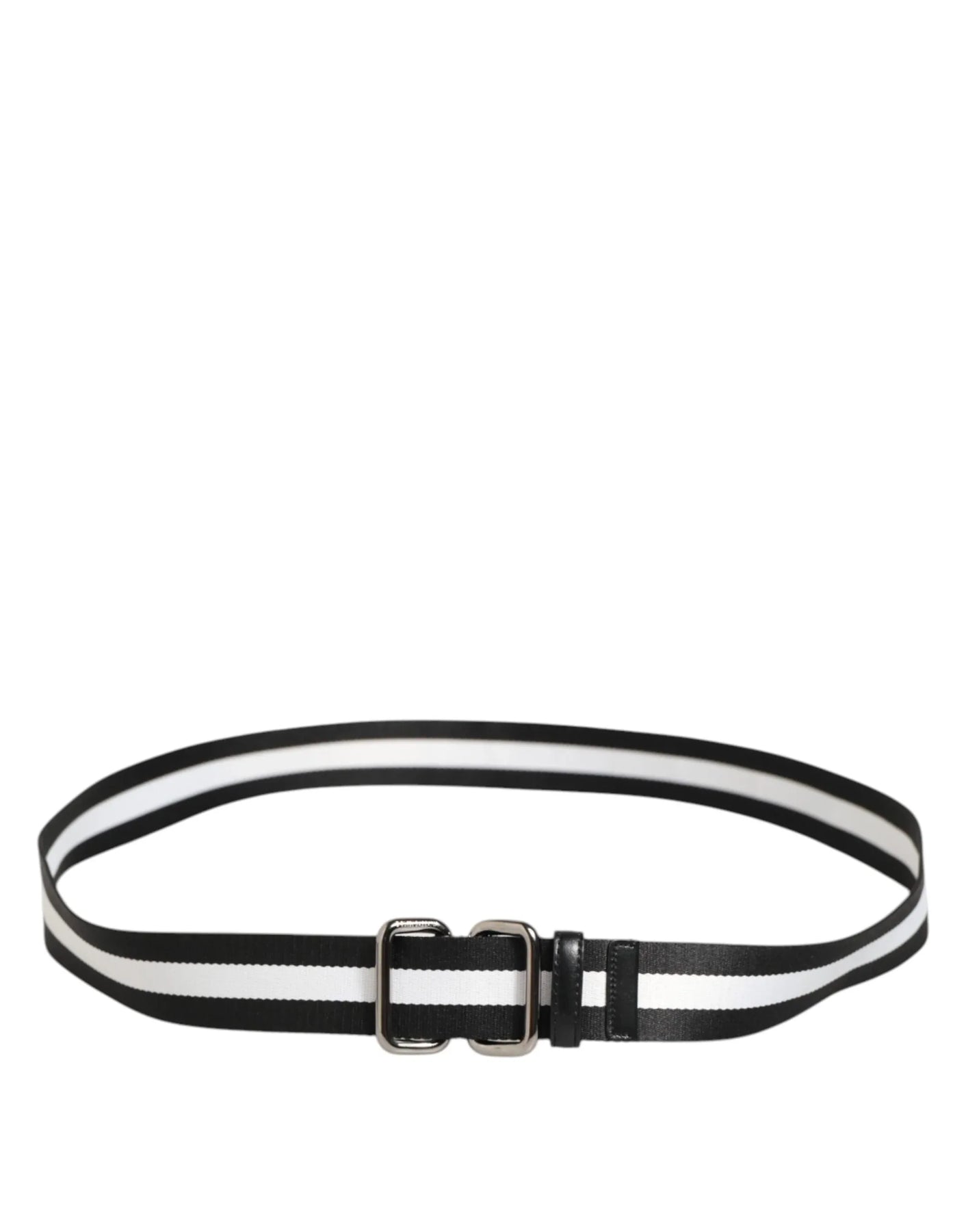 Dolce & Gabbana Black White Striped Logo Metal Buckle Belt