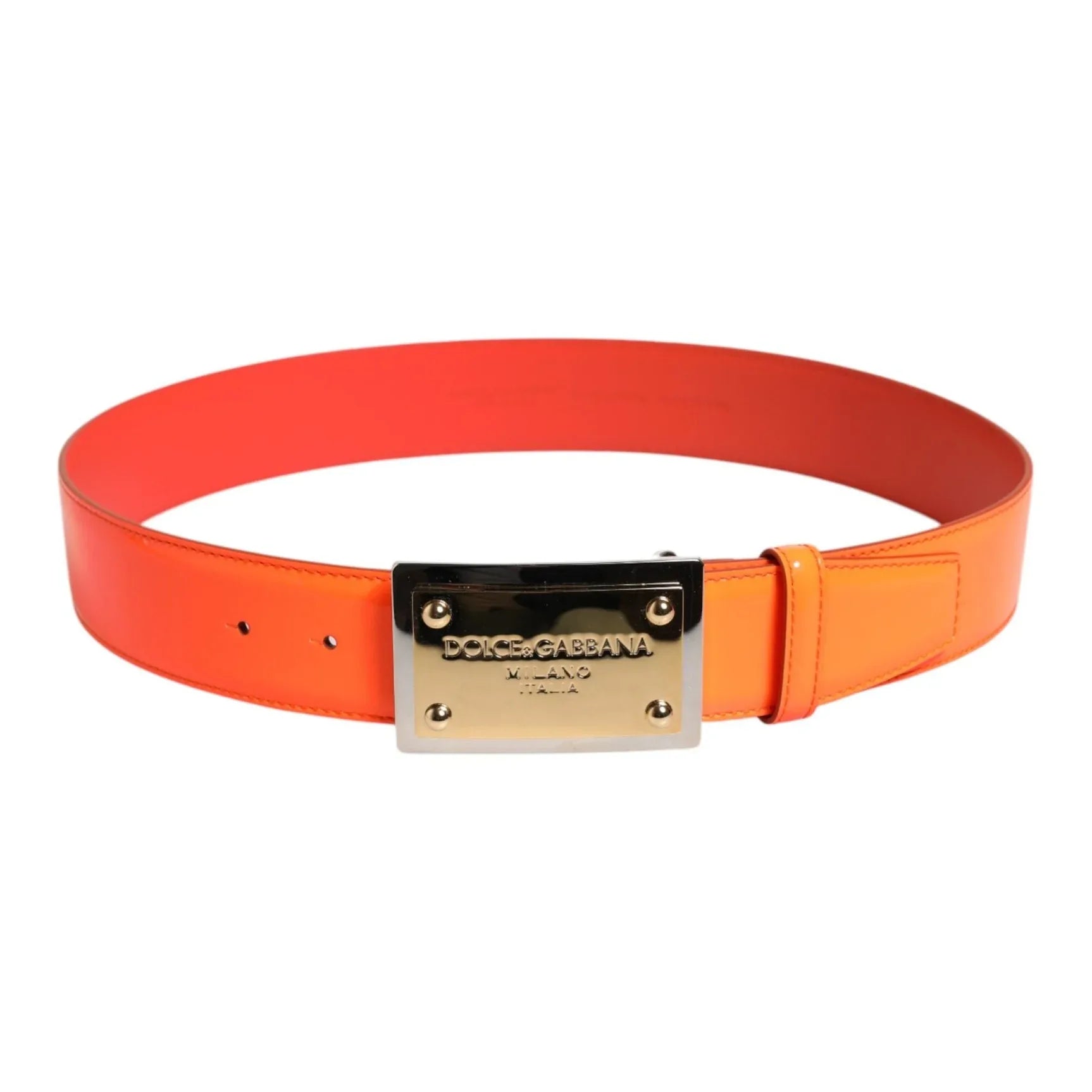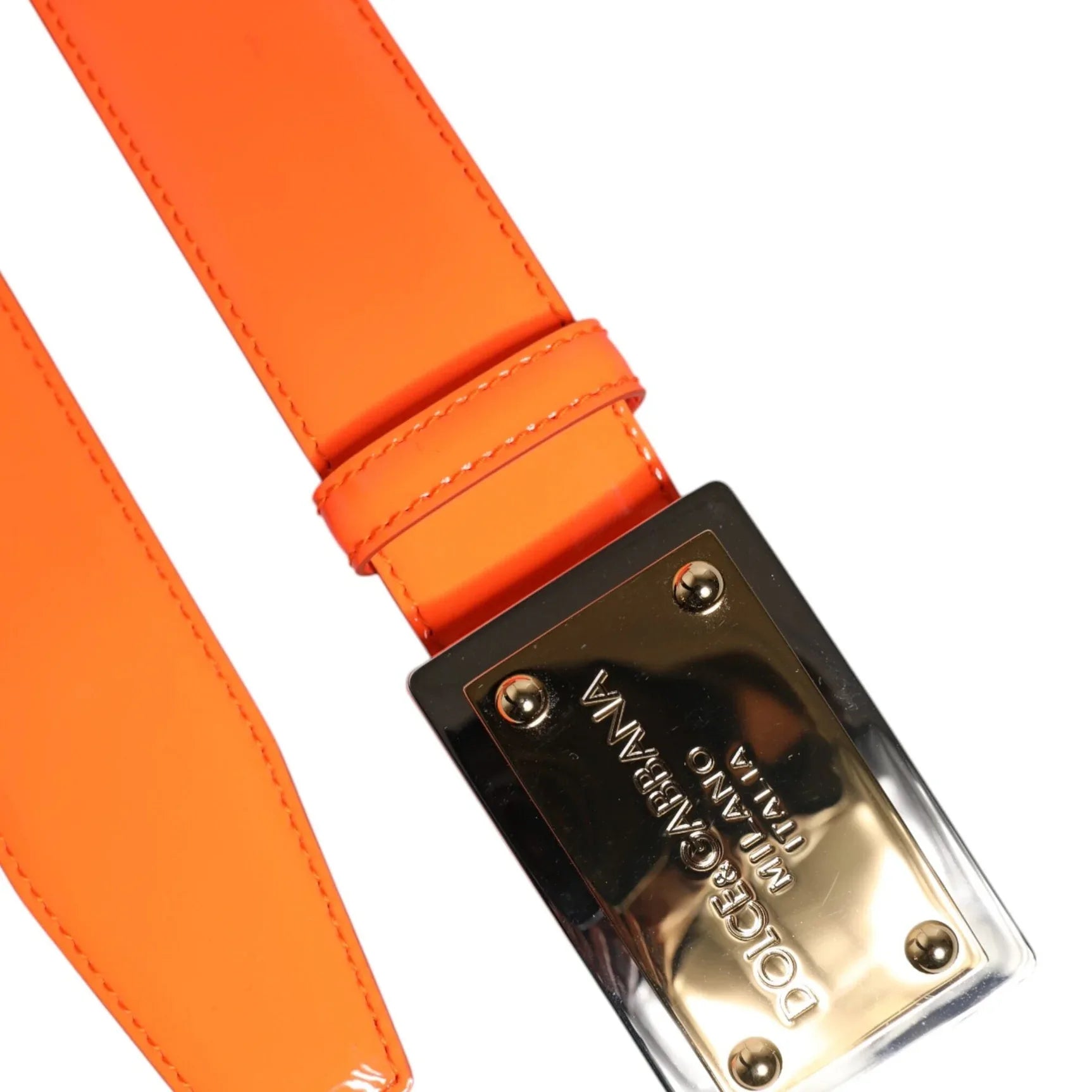 Dolce & Gabbana Orange Gold Tone Metal Logo Buckle Belt