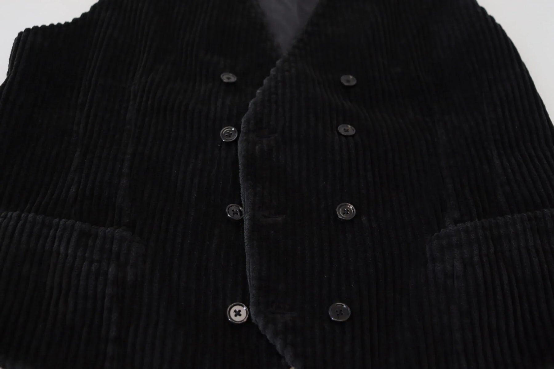 Dolce & Gabbana Black Cotton Double Breasted Waistcoat Vest