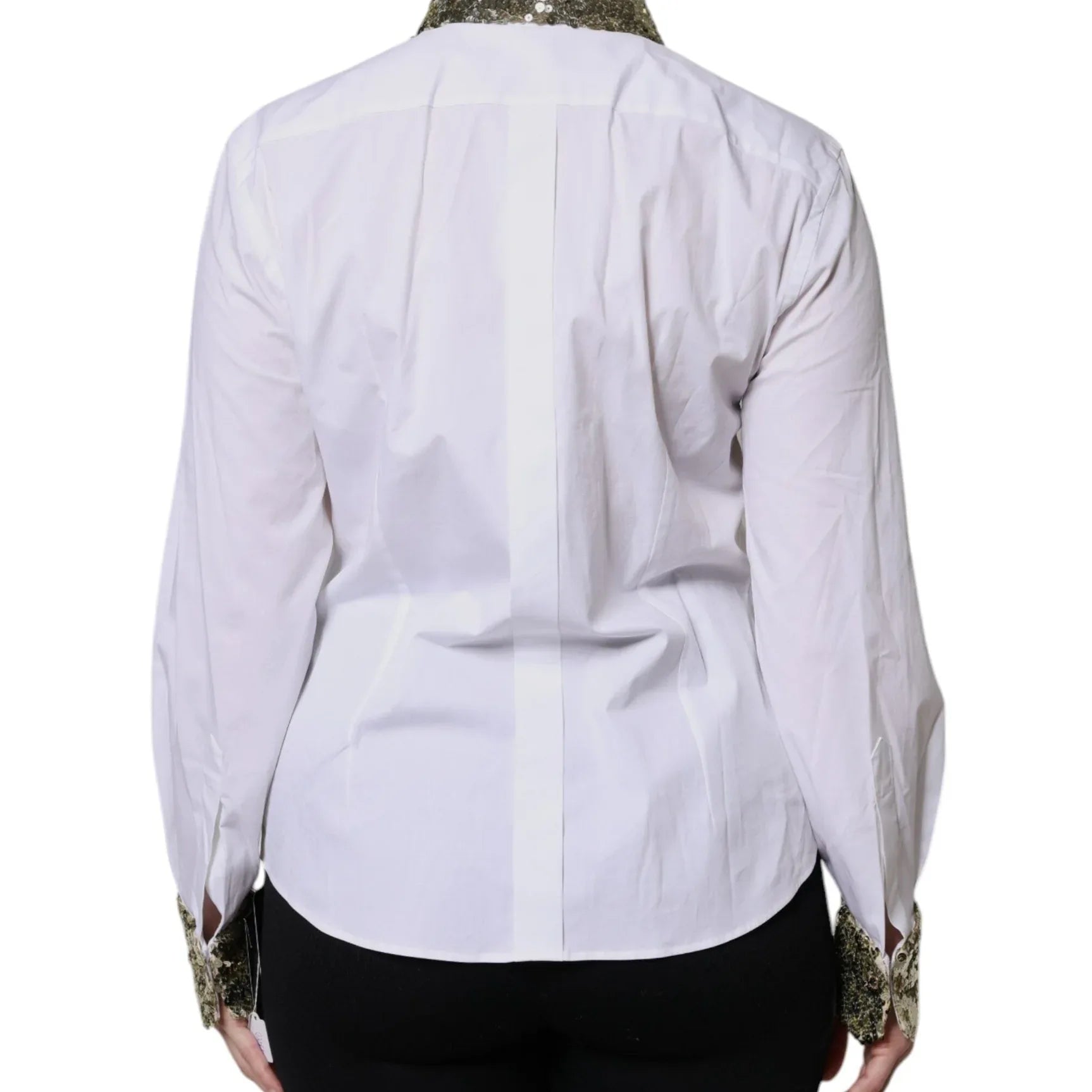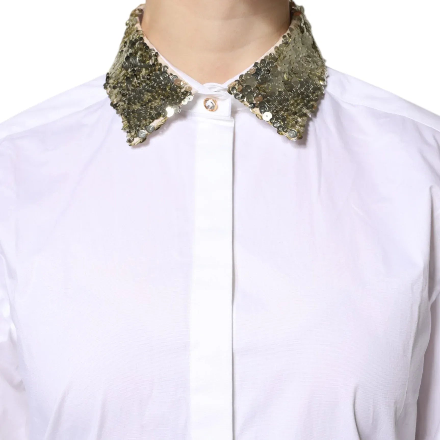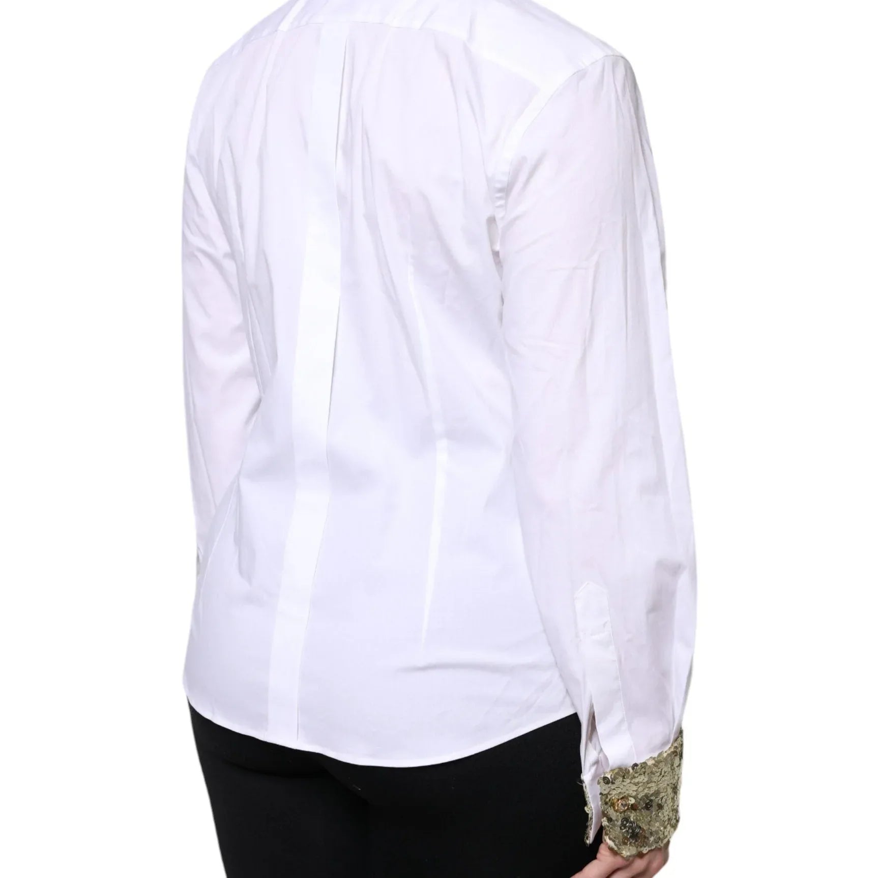 Dolce & Gabbana White Cotton Long Sleeves Sequin Shirt Top - Sootee Collective