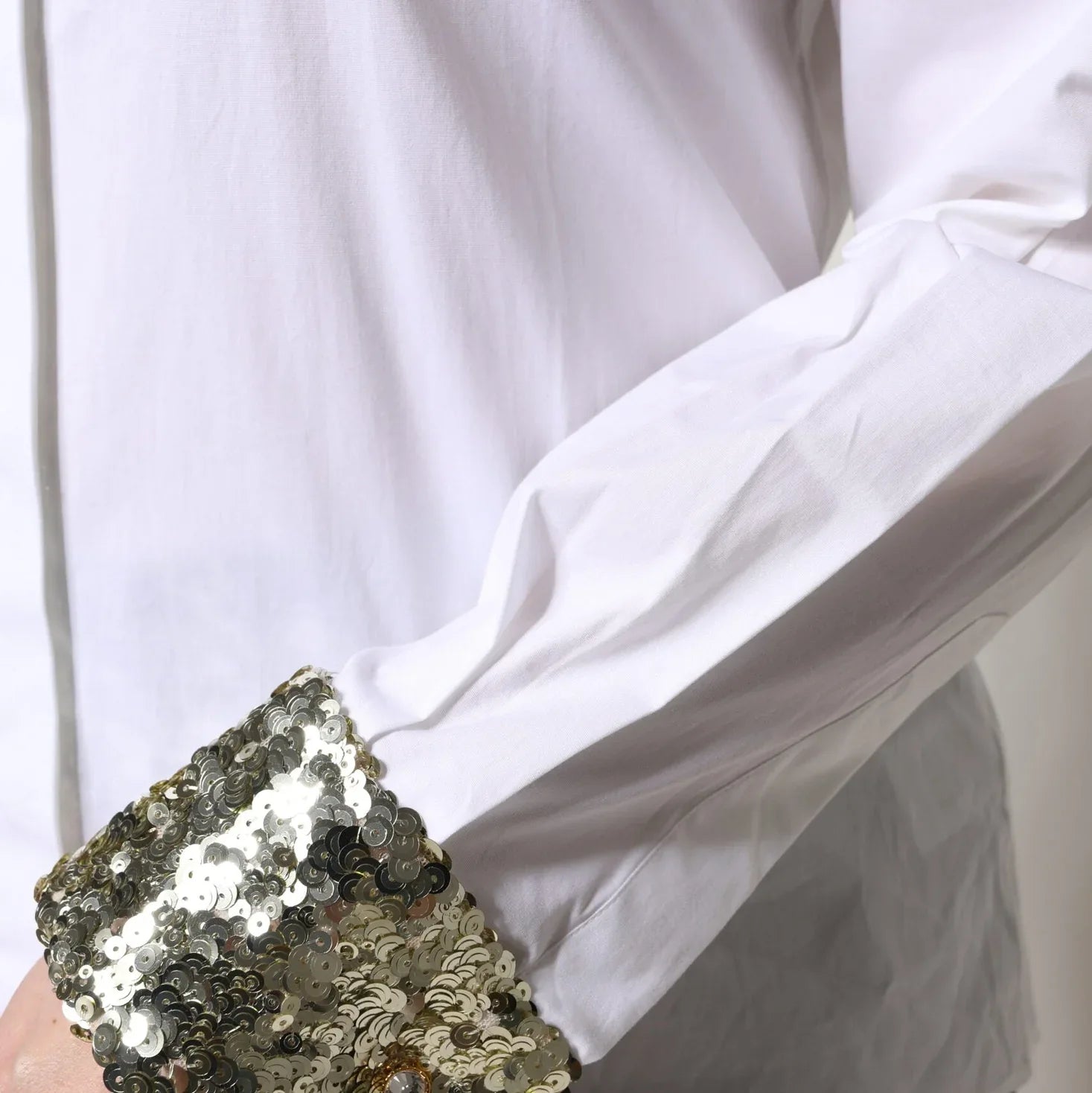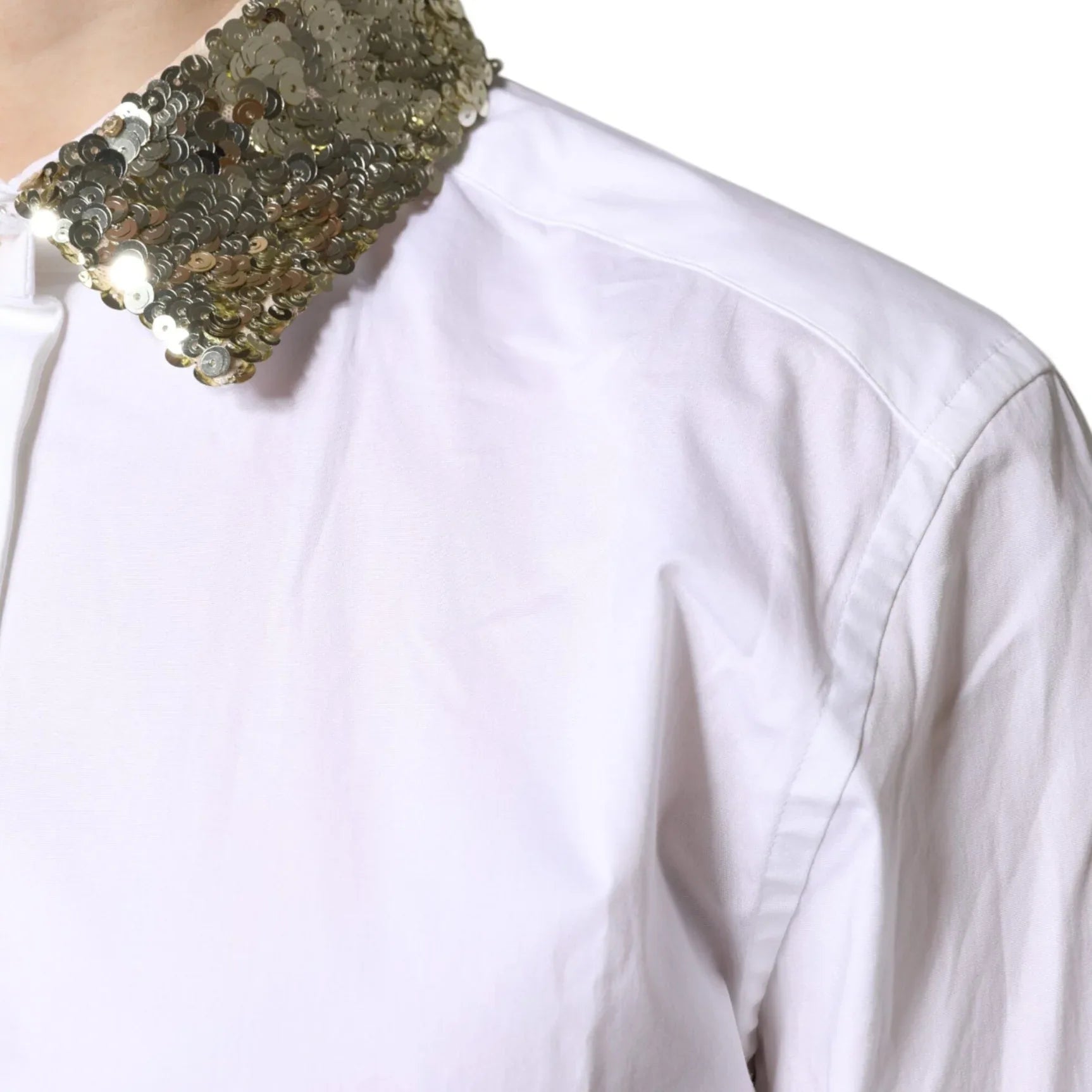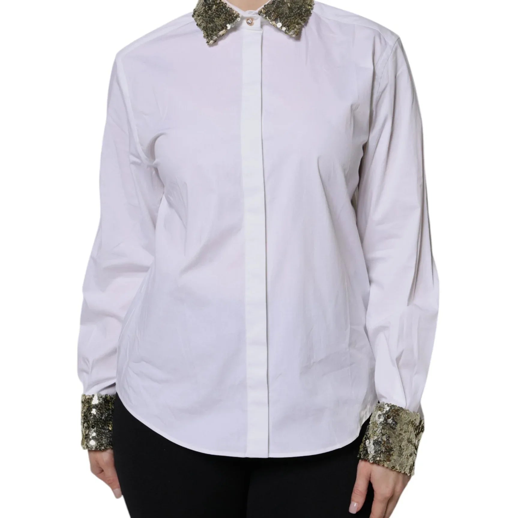Dolce & Gabbana White Cotton Long Sleeves Sequin Shirt Top - Sootee Collective